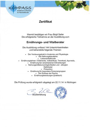 - Ernährungs- und Vitalberaterin an der Kompass-Akademie Nürtingen